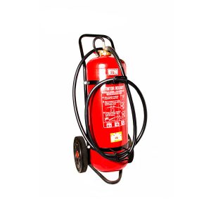 Extintor rodante cargado de PQS con capacidad de 25, 50 y 100 Kg; con agente impulsor externo.